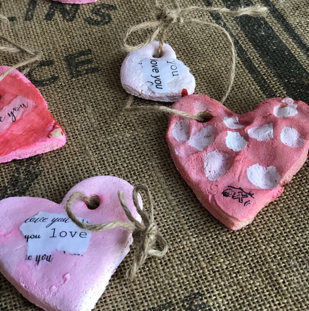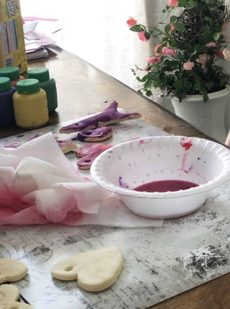 We cleaned up from painting, and while we did this, the paint had time to dry on the hearts.