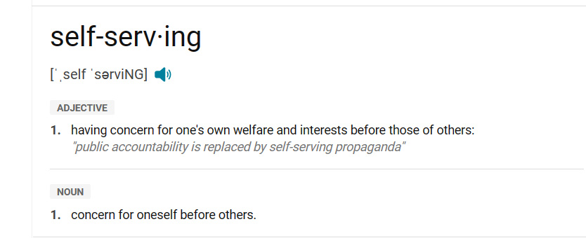 Maybe it is a little self-serving. So I looked up the definition of self-serving to be sure.
