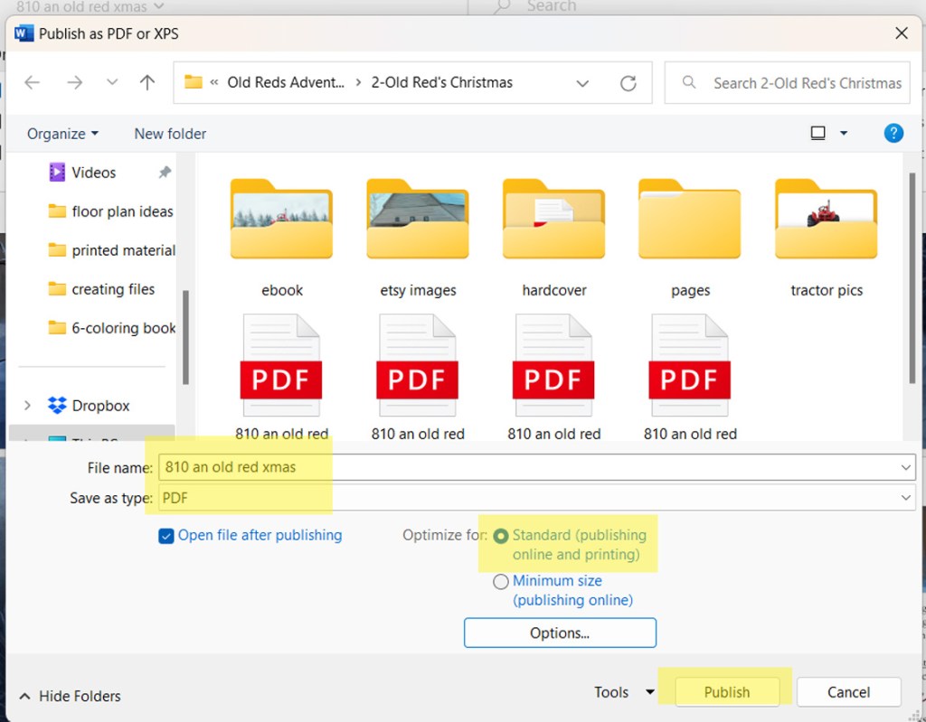 But back to word. Unfortunately, this is where you must make a decision that you would probably rather make later. And that is the size of your book. I suggest going with something standard and easy to mail. And then sticking with that size so all your books are the same size. You don’t have to; I just think they look nice this way when put all together.
