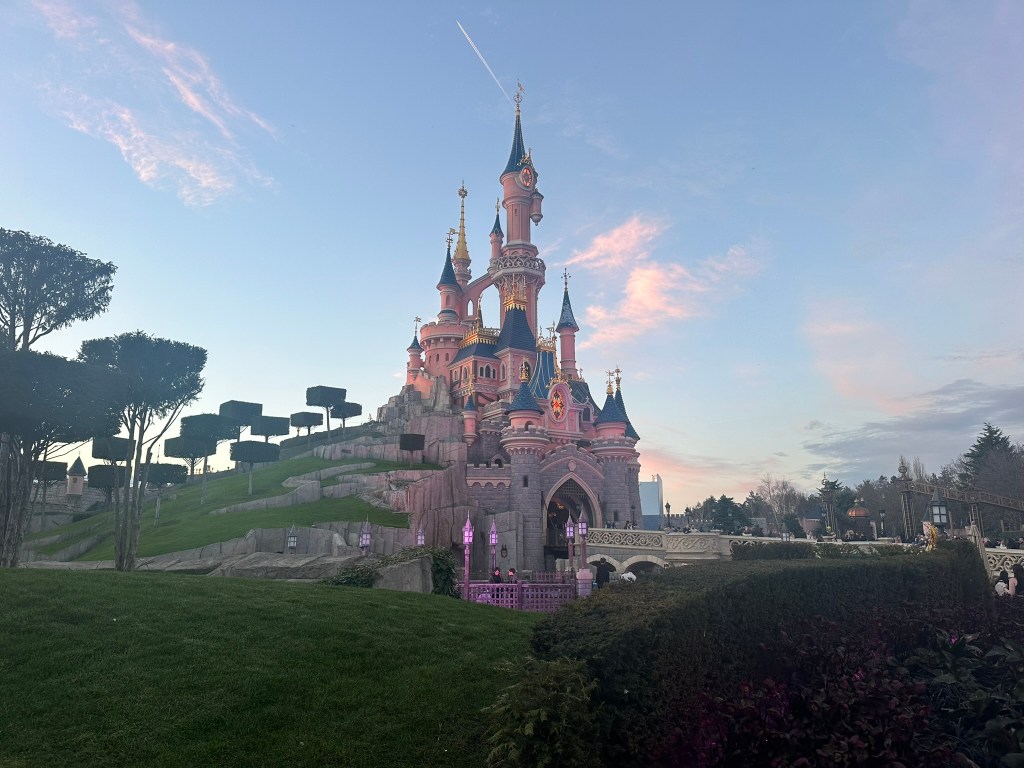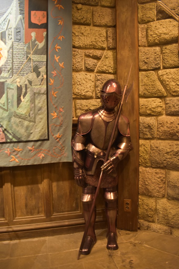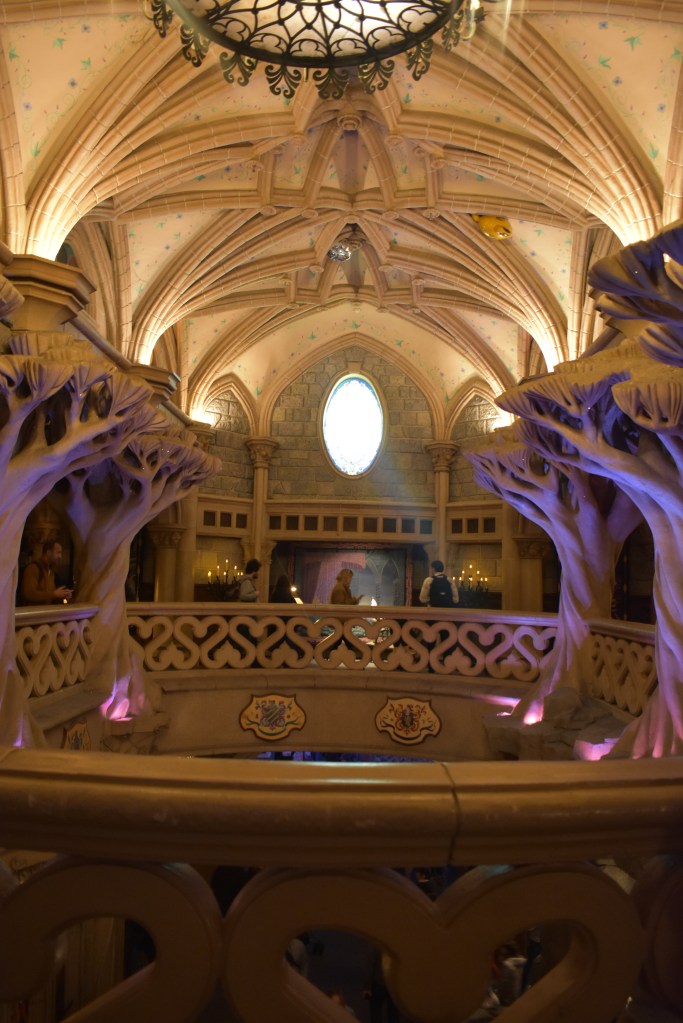 After our time in the city, we used BT Transfer to get to the Sequoia Lodge at Disneyland Paris. I am also a Disney nut and the Paris Castle is my favorite of them all… and after seeing it in person, it still is! The castle is inspired by the Sleeping Beauty movie and even has the sculpted trees shown in the film. Instead of walking just through the castle there are two gift shops, and an upper level. The upper level has colorful stained-glass windows throughout depicting the sleeping beauty story. There are also two slumbering knights and a spinning wheel. The middle of the castle is open, with tall columns that are topped with carved tree canopies. It is all stunning to see. And if that is not enough there is a dragon slumbering in the cellar… It’s just incredible!