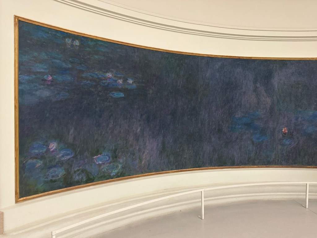We walked all over Paris, and used an uber when we got tired. We visited the Musee de la Orangerie as I always wanted to see a Monet painting. Monet wanted his work in the museum to be observed in silence. So, if visitors get loud, there is a person there to “shush” everyone. A professional shusher! There is also one at Saint Chapelle too! The paintings in the museum are large and curved along the wall. And you have to admire Monet’s talent to create these masterpieces up close but knowing how wonderful they would look when admired from a distance.